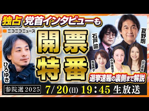 ひろゆきをはじめ、夏野剛、石戸諭、中林美恵子、馬場典子、山口真由といった多彩なゲストが集結し、選挙情勢や注目候補、メディア報道のあり方などを“忖度なし”で徹底トーク。