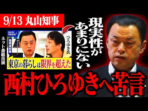 【9/13 丸山知事】ABEMA Prime出演時、”ひろゆき”氏との討論についての苦言…。そして反省を述べる点を丸山知事。彼らは東京一極集中の成功者だ。#政治 #ひろゆき #島根県知事