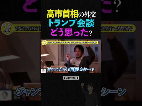 ひろゆきが先日行われた高市早苗総理とトランプ大統領の日米首脳会談と、その中で批判されている「ジャンプしてひと回りした立ち振る舞い」について持論を語る場面の切り抜きショート動画です。
